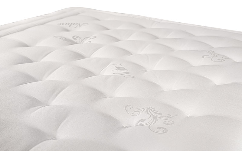 Carcaça reforçada de mola ensacada com sistema premium extra conforto com espuma suave, algodão 100% natural e tecido viscose de alta qualidade.